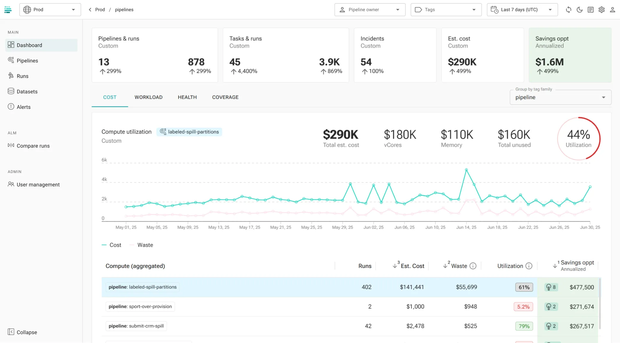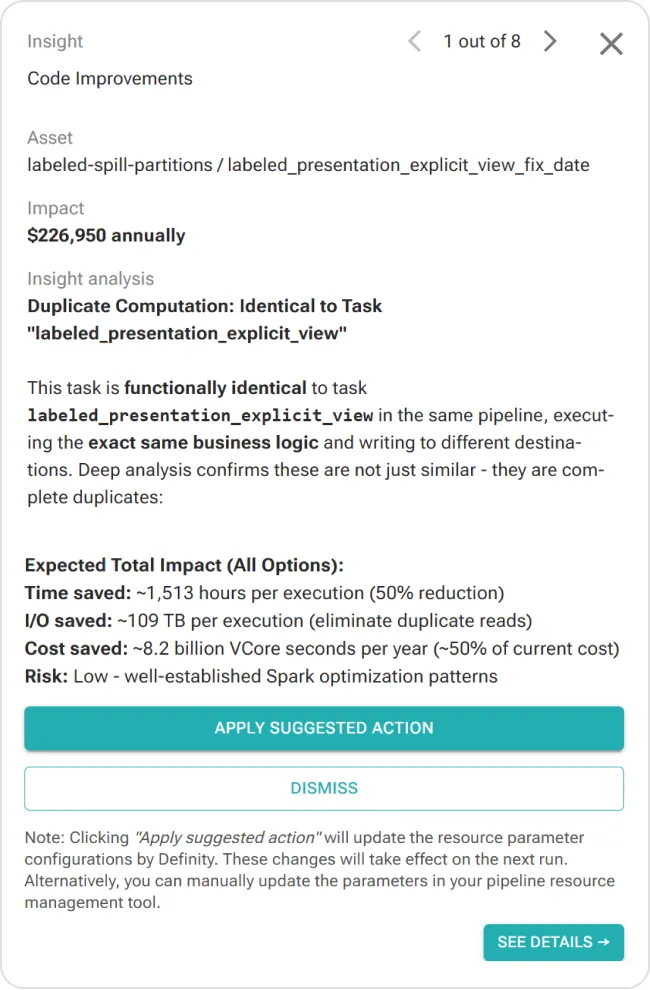 Pinpoint waste across compute, job execution, clusters, and pipeline code