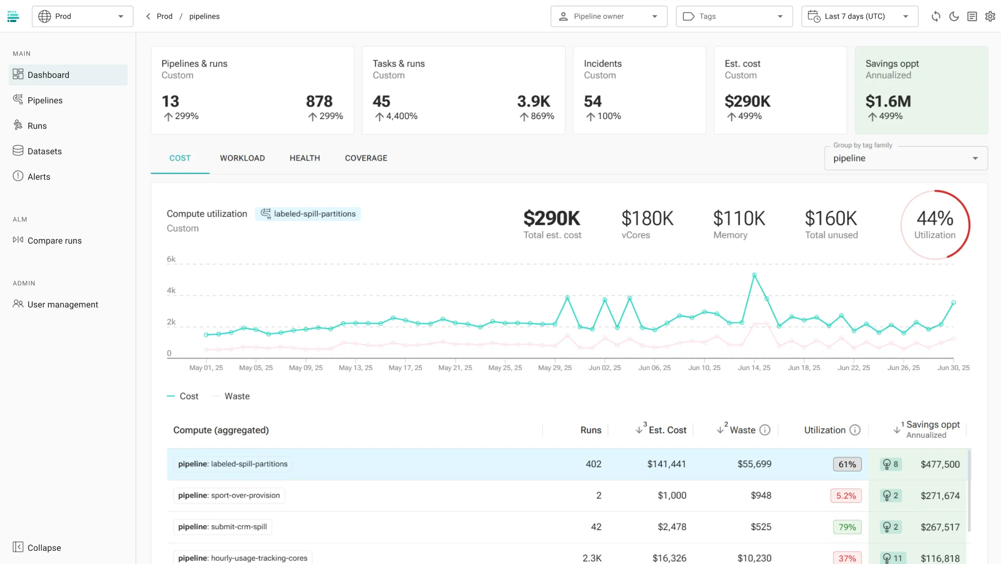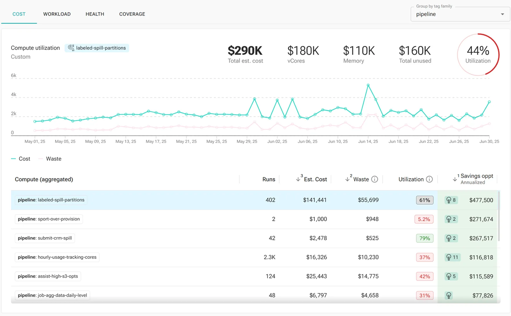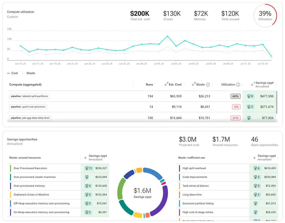 Profile job execution over time, detect degradations, and identify savings opportunities.
